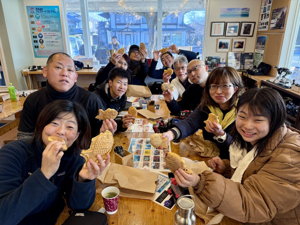 ダイビングを満喫して夕方は”たい焼き〜”