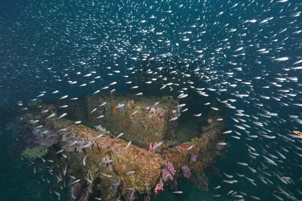 沈船の周りには何千という数のクロホシイシモチやネンブツダイが群れ群れでした!
