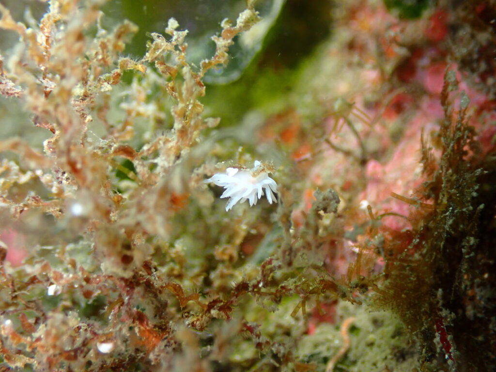 そこら中にたくさんいた【イバラミノウミウシ】白くて小さいサイズです