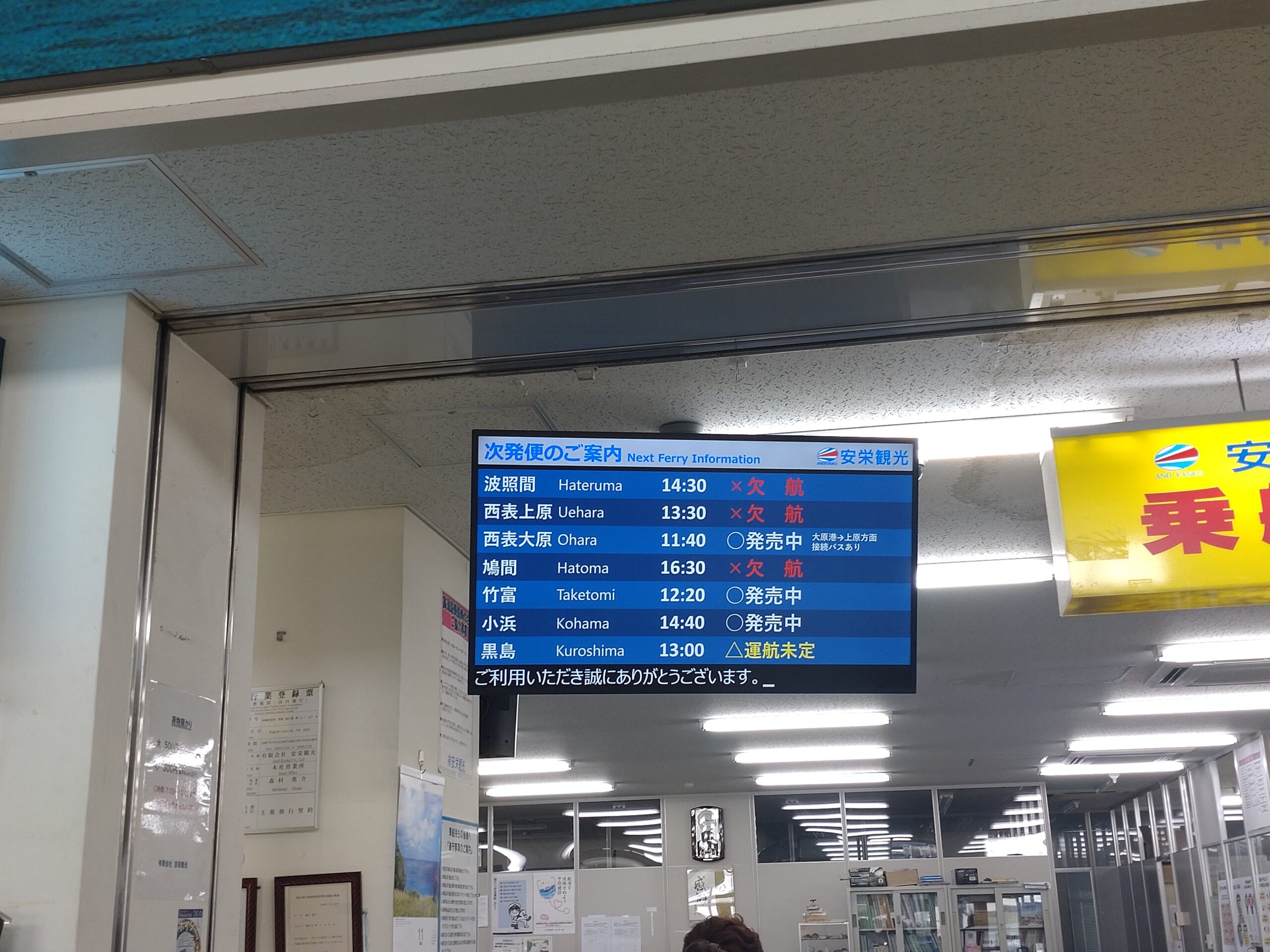 翌日も午前便が欠航し、どうなる事かと思ってチケット売場に並んでいたら、11:30の便が出ることに!!