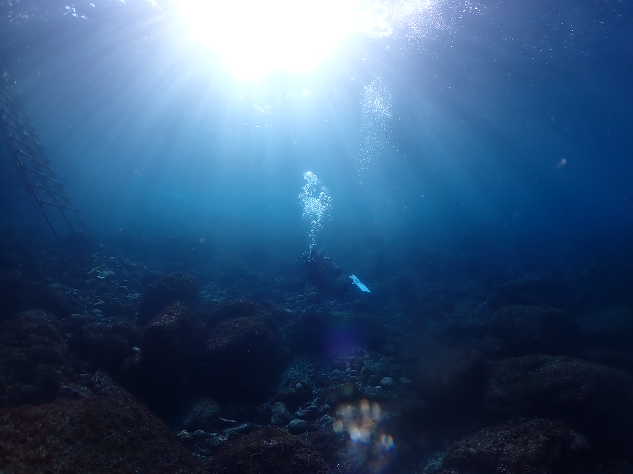 透明度もよくて、大島のスーパービーチ、秋の浜!特にエントリー、エキジットの浅場エリアの太陽の光がキラキラでした