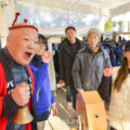 ナイトが終われば、冷えた体を温めてくれるお鍋が待っています。年越しなので豪華にカニ鍋です。自然と笑顔になってしまいますね。カニを食べるときはみんな集中していて静か笑