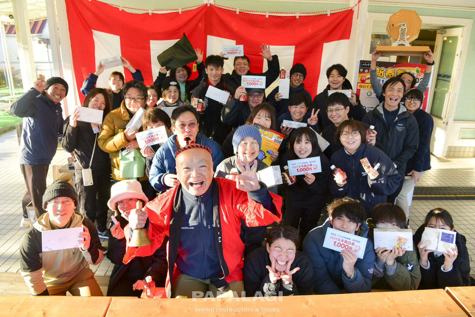 そしてそして、ダイビング後は伊豆店で福引き&豚汁&お餅つきです!