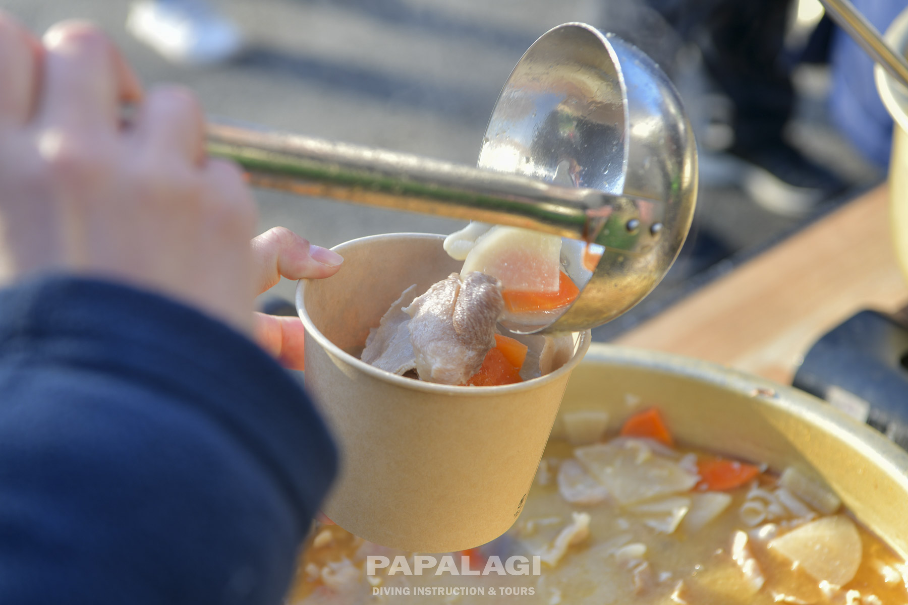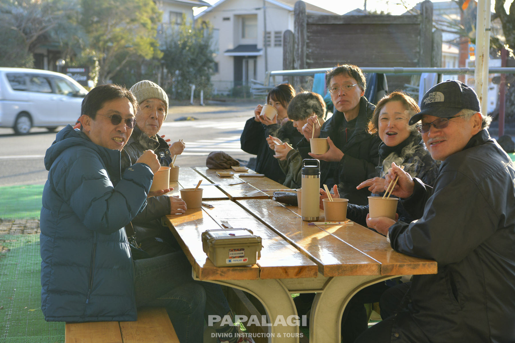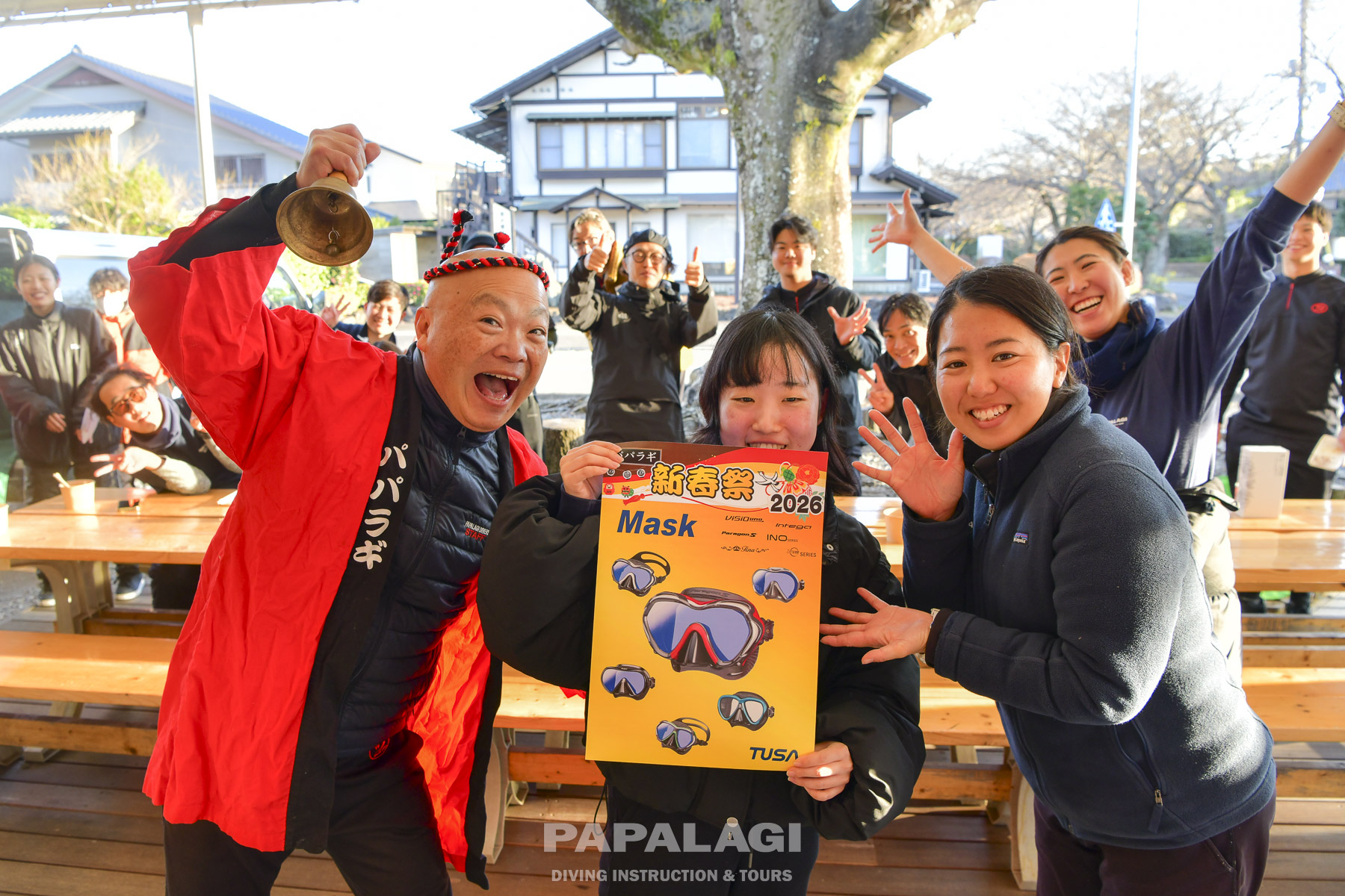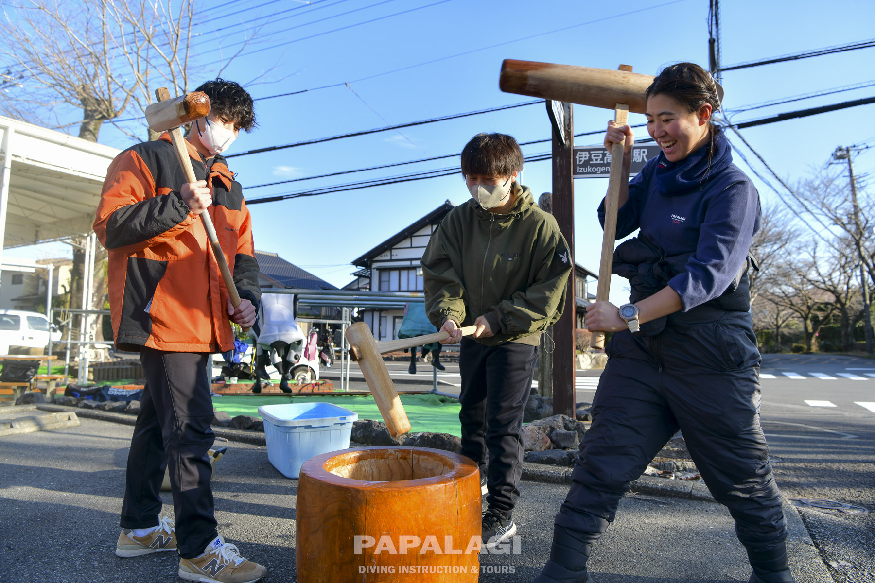そしてそして、ダイビング後は伊豆店で福引き&豚汁&お餅つきです!