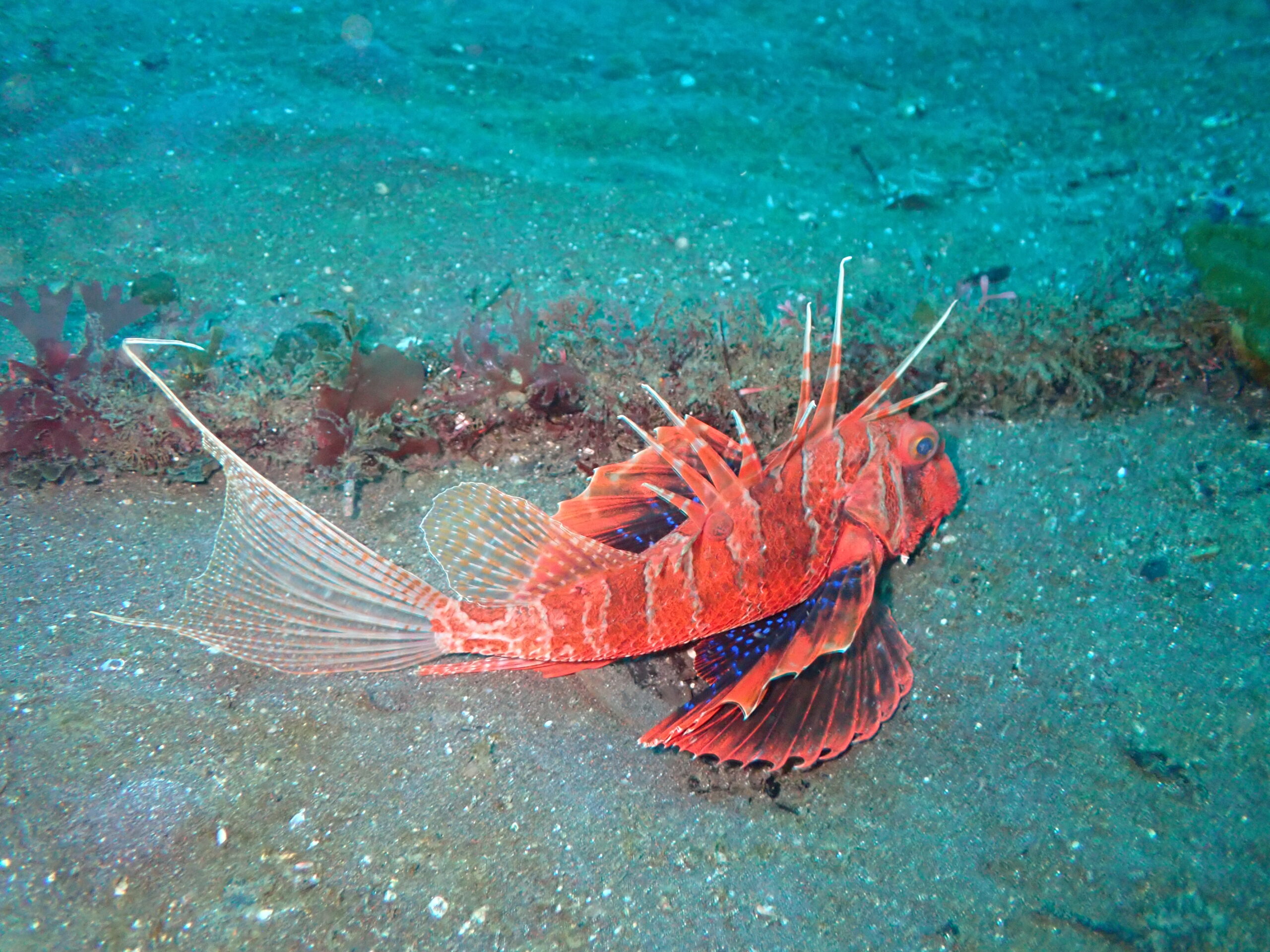 大瀬崎でよく深場に登場するミジンベニハゼ、現在水深20mあたりに住んでいていつもよりはちょっと浅め!