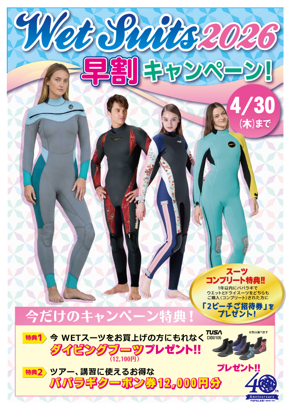 今年もウエットスーツの早割キャンペーンがスタートしました。